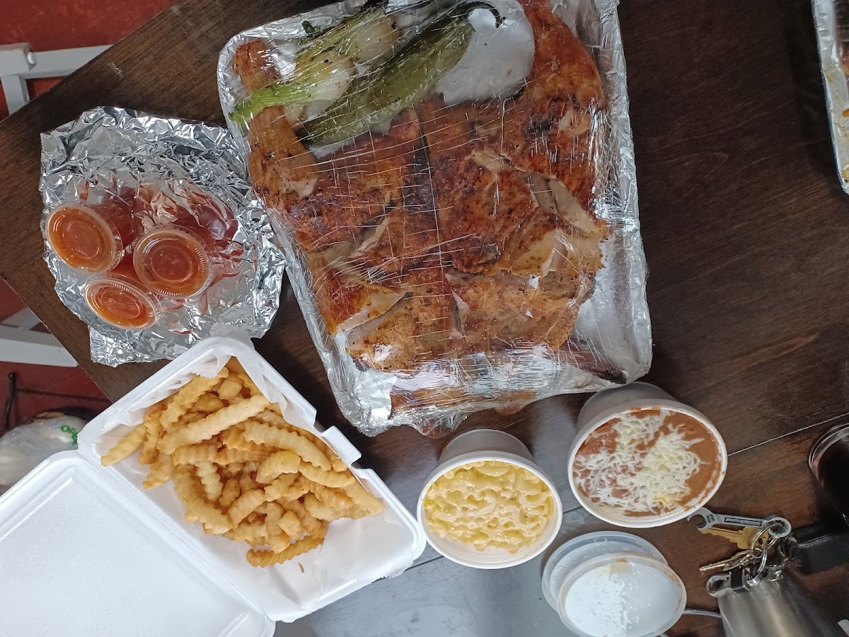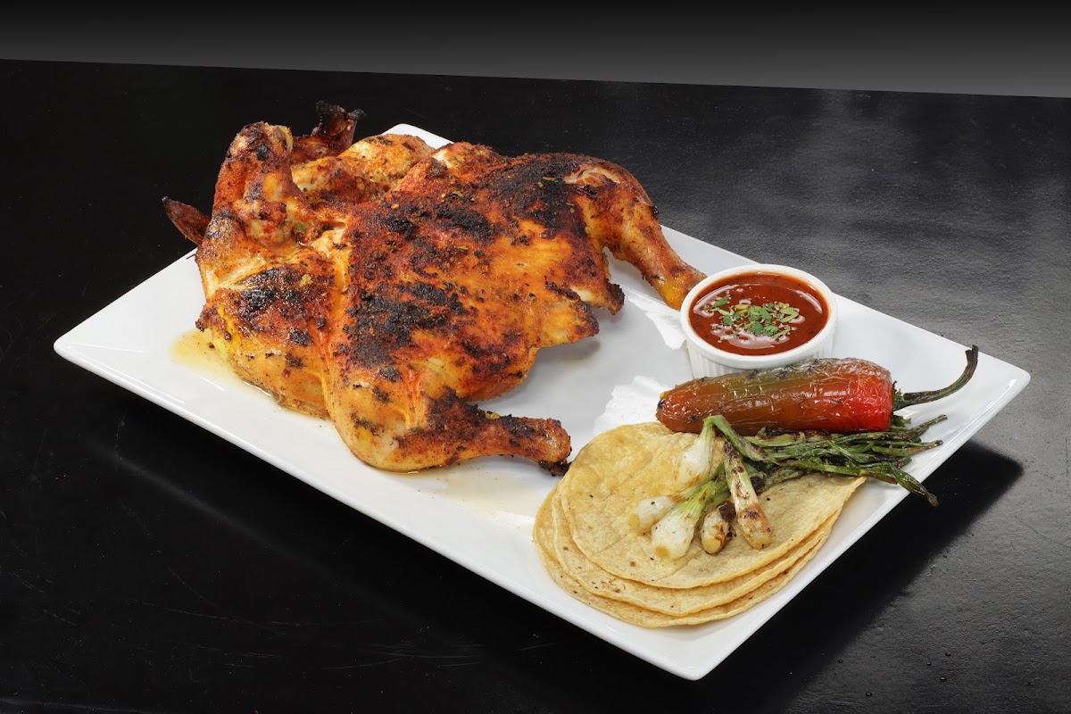 Grilled Whole Chicken with three sides of your choice including warm tortillas and salsa.