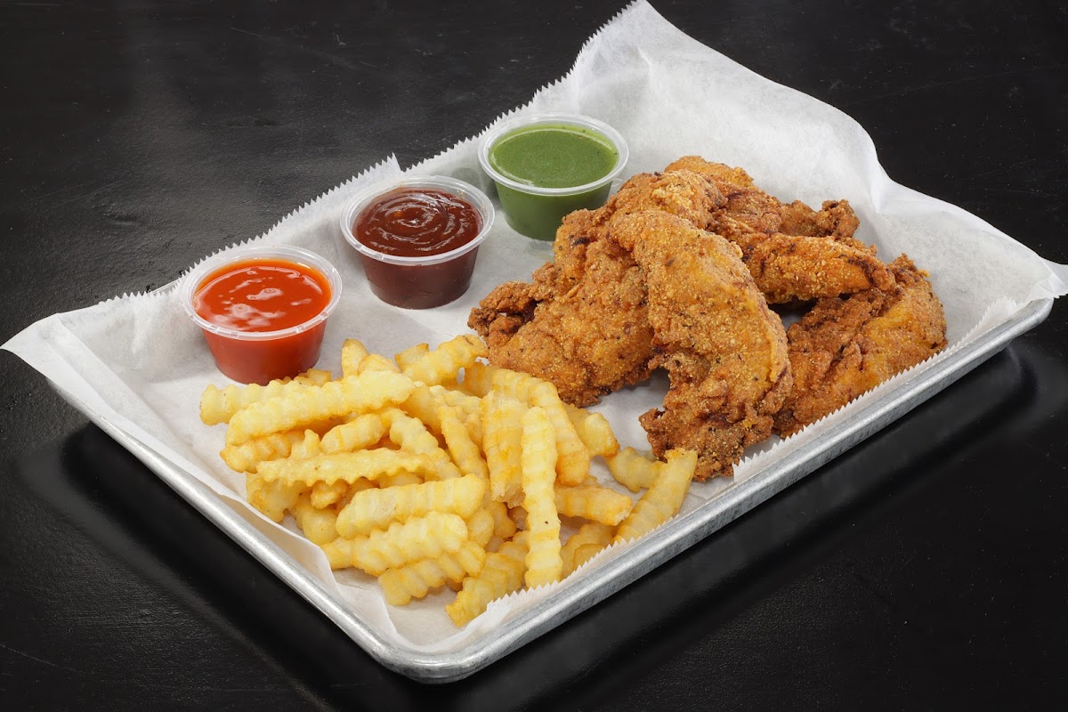 Mashed potatoes, macaroni and cheese, Mexican Rice, beans, French fries, steamed veggies.